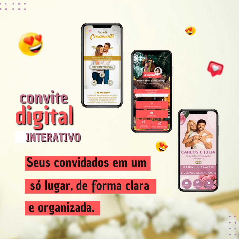 Supreenda seus convidados com um convite personalizado, digital e interativo.